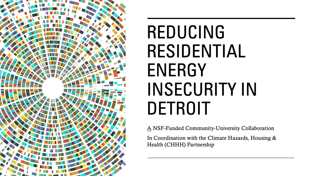 The goal of this NSF Smart and Connected Communities (SCC) project is to explore the efficacy of new social-technological paradigms to reduce residential energy insecurity for low- and moderate-income (LMI) households in three neighborhoods in Detroit, Michigan, which is one of the top ten highest energy burdened metros in the US, where LMI households spend 15 – 30% of their income on energy costs (6% or less is considered affordable). This research fully integrates community perspectives in the design, application and testing of emerging smart technologies, individualized residential energy management approaches, and energy rate structure reform to realize cost savings, improved energy efficiency and conservation, and enhanced health equity.